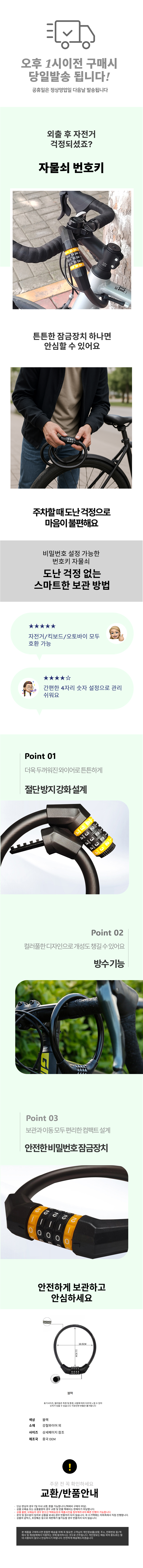 자전거 킥보드 오토바이 4자리번호키 잠금장치 자물쇠