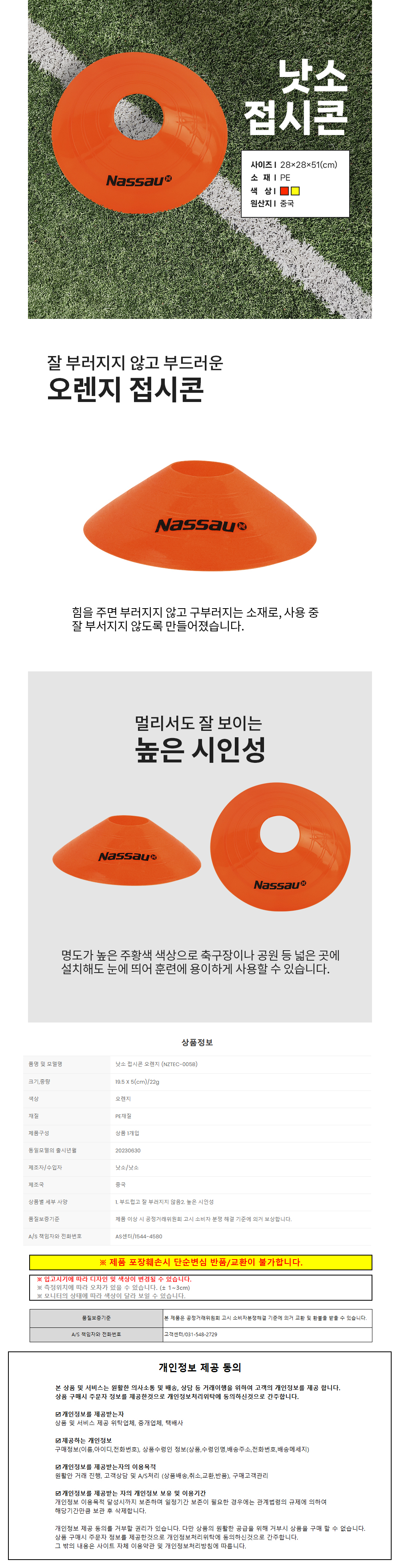 낫소 축구 접시콘 오렌지 (1개입) (NZTEC-005B) 스포츠 경기 훈련용품