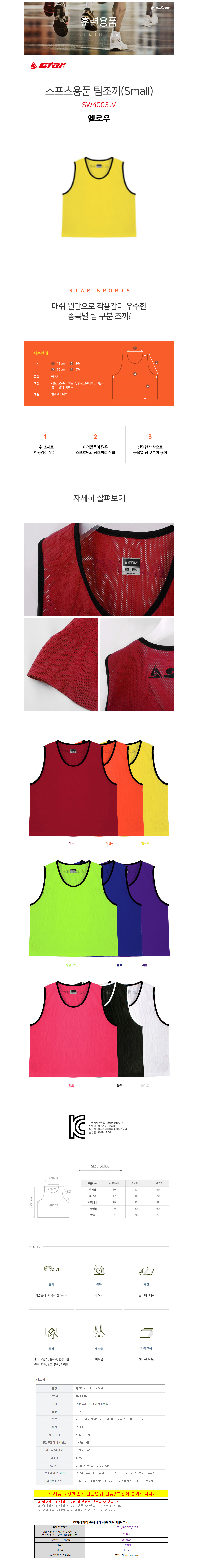 스타스포츠 팀조끼 V Small 옐로우 SW4003JV
