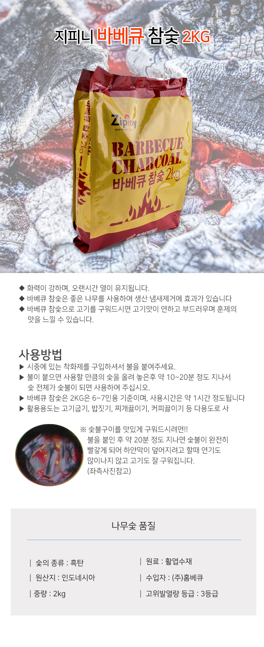 지피니 바베큐참숯 2kg