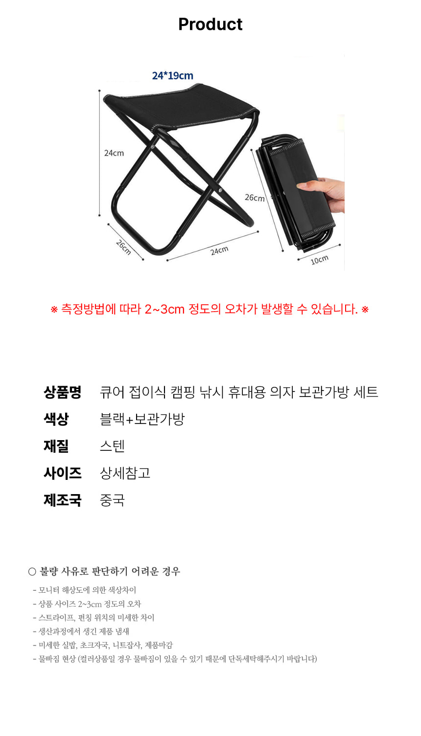 휴대용 접이식 야외 캠핑 등산 낚시 차박 간이 의자
