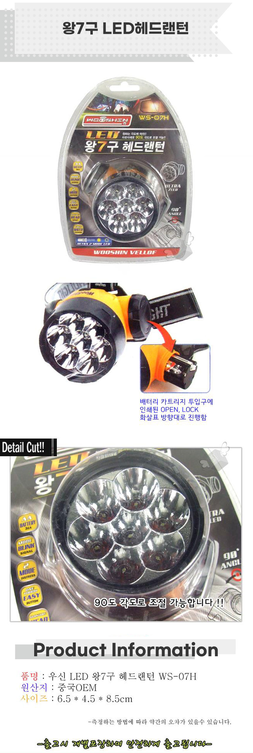 왕7구 각도 조절 LED헤드랜턴 x3개 캠핑헤드랜턴