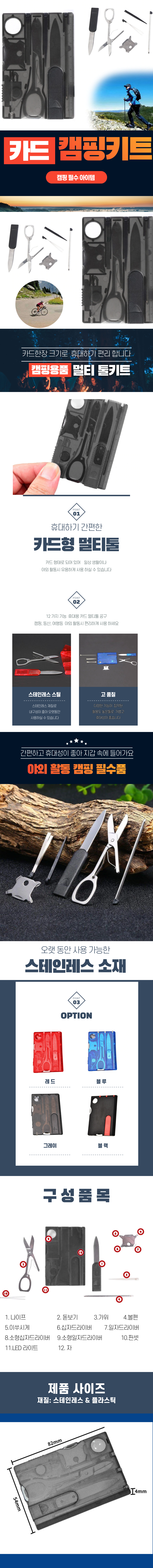 카드형 포크나이프 멀티툴 다용도 그레이색상
