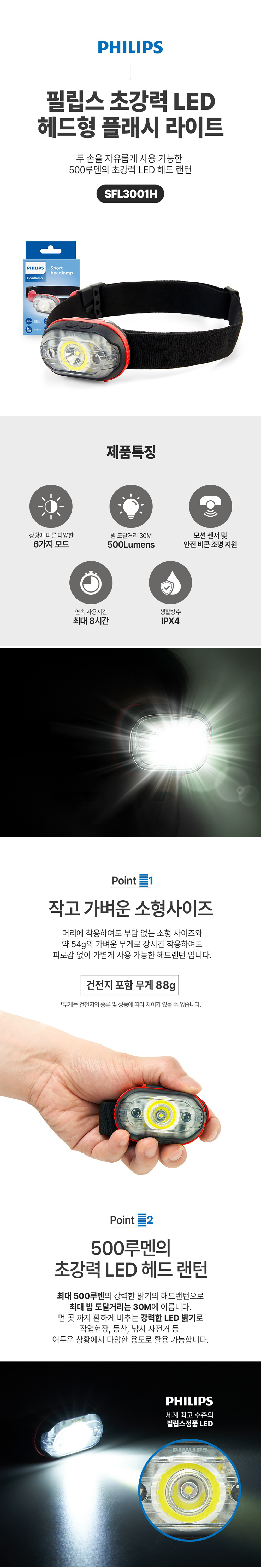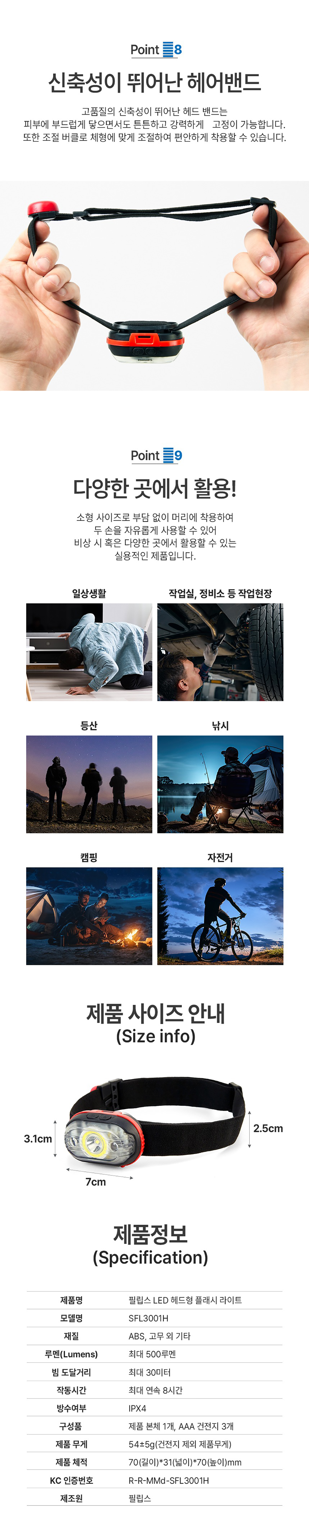 | 정격전압/소비전력 | 500Lumens,AAA건전지 3개 |