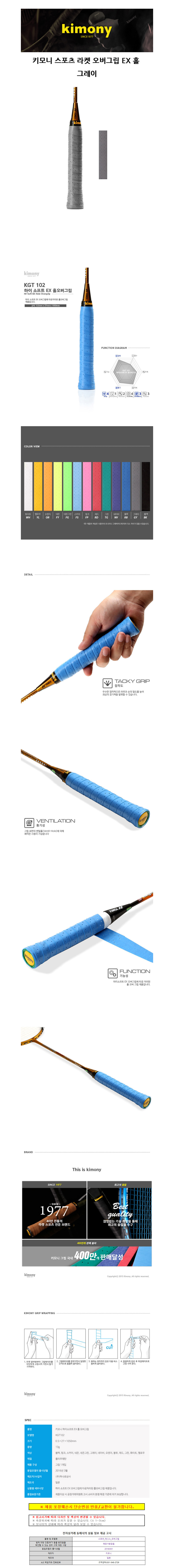 키모니 스포츠 라켓 오버그립 EX 홀 (그레이) (KGT102)