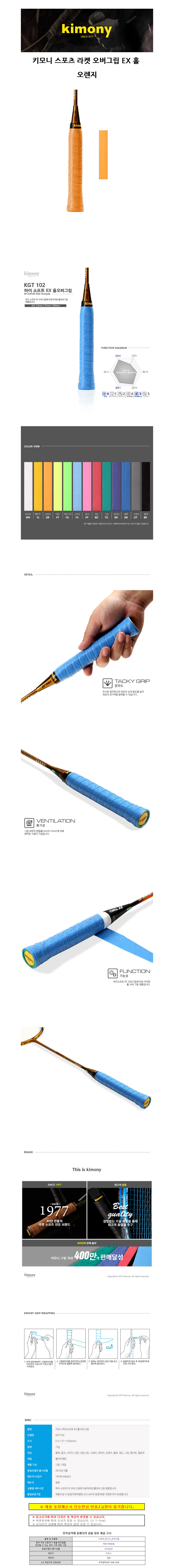 키모니 스포츠 라켓 오버그립 EX 홀 (오렌지) (KGT102)