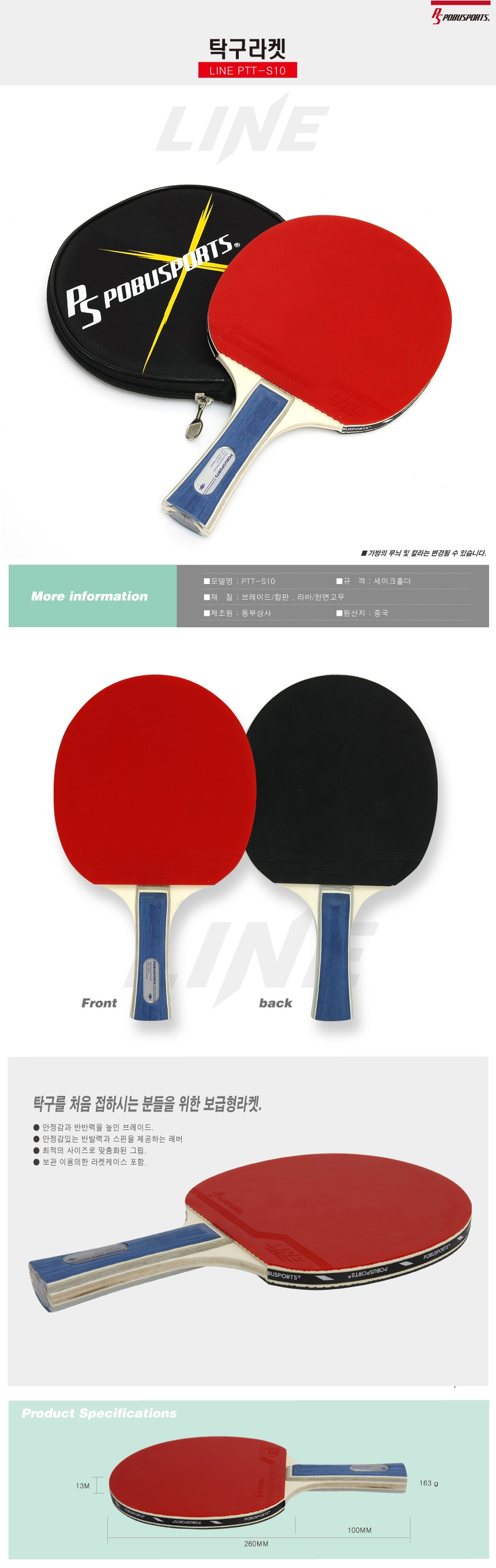 (PB) 포부스포츠 쉐이크핸드 탁구라켓PTT-S10