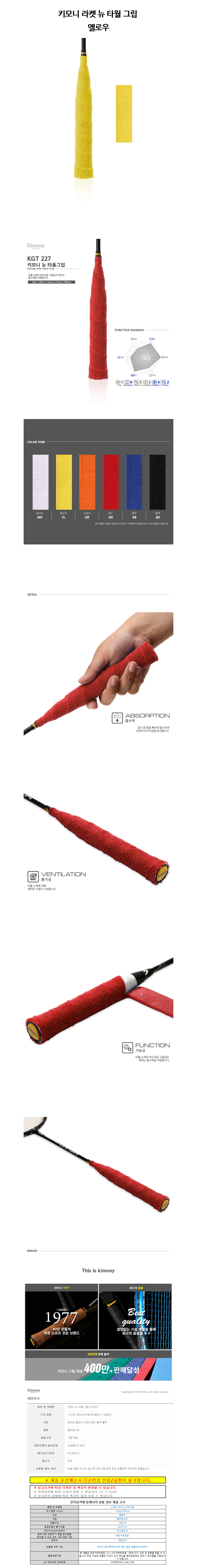 키모니 스포츠 라켓 뉴 타월 그립 (옐로우) (KGT227)