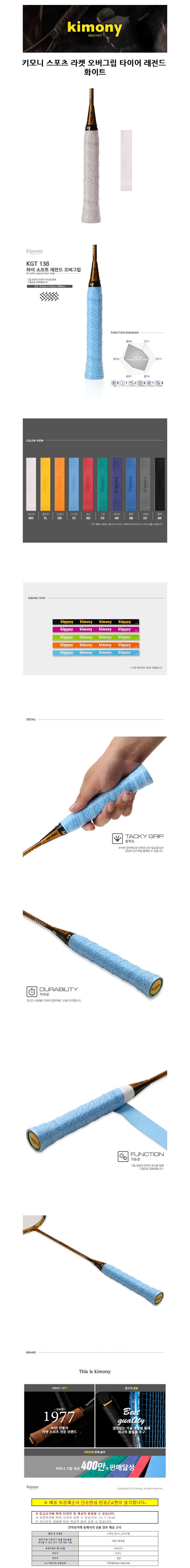 키모니 스포츠 라켓 오버그립 타이어 레전드 화이트 HSKGT138