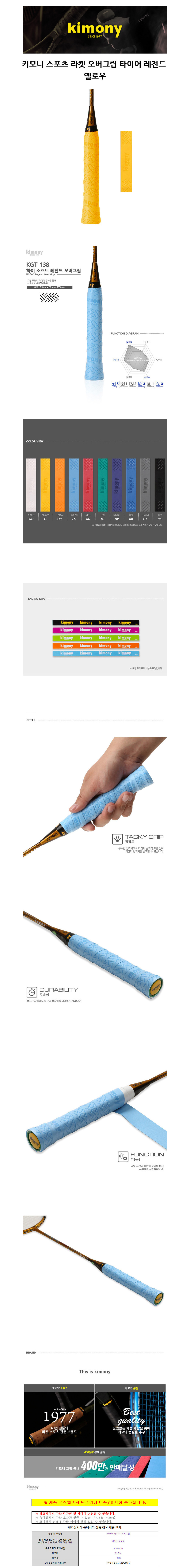 키모니 스포츠 라켓 오버그립 타이어 레전드 옐로우 HSKGT138