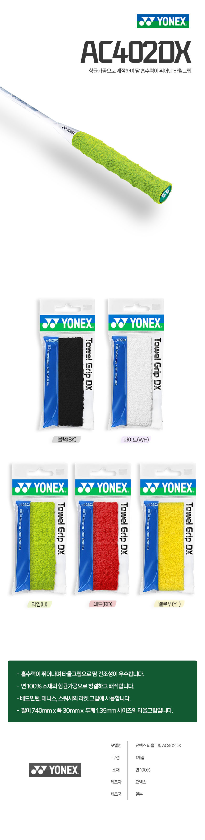 | 품명 및 모델명 | 품명:요넥스 타월그립 / 모델명:AC402DX |