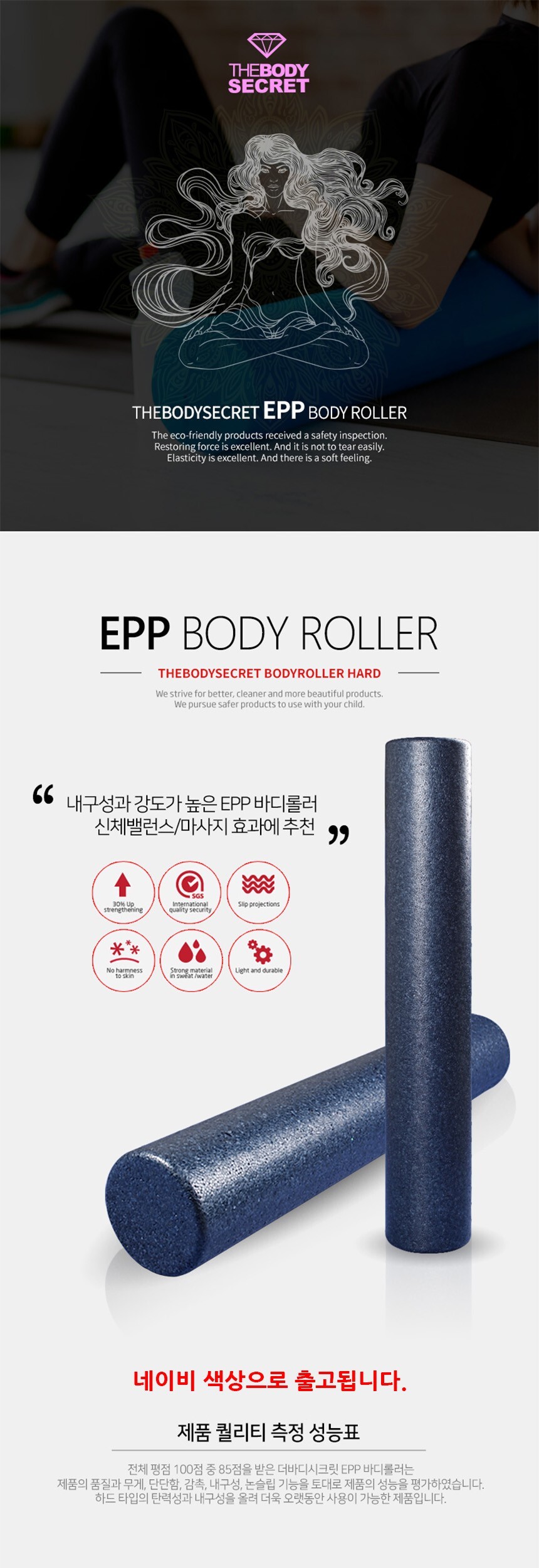 더바디시크릿 EPP 바디롤러 폼롤러 네이비 90cm