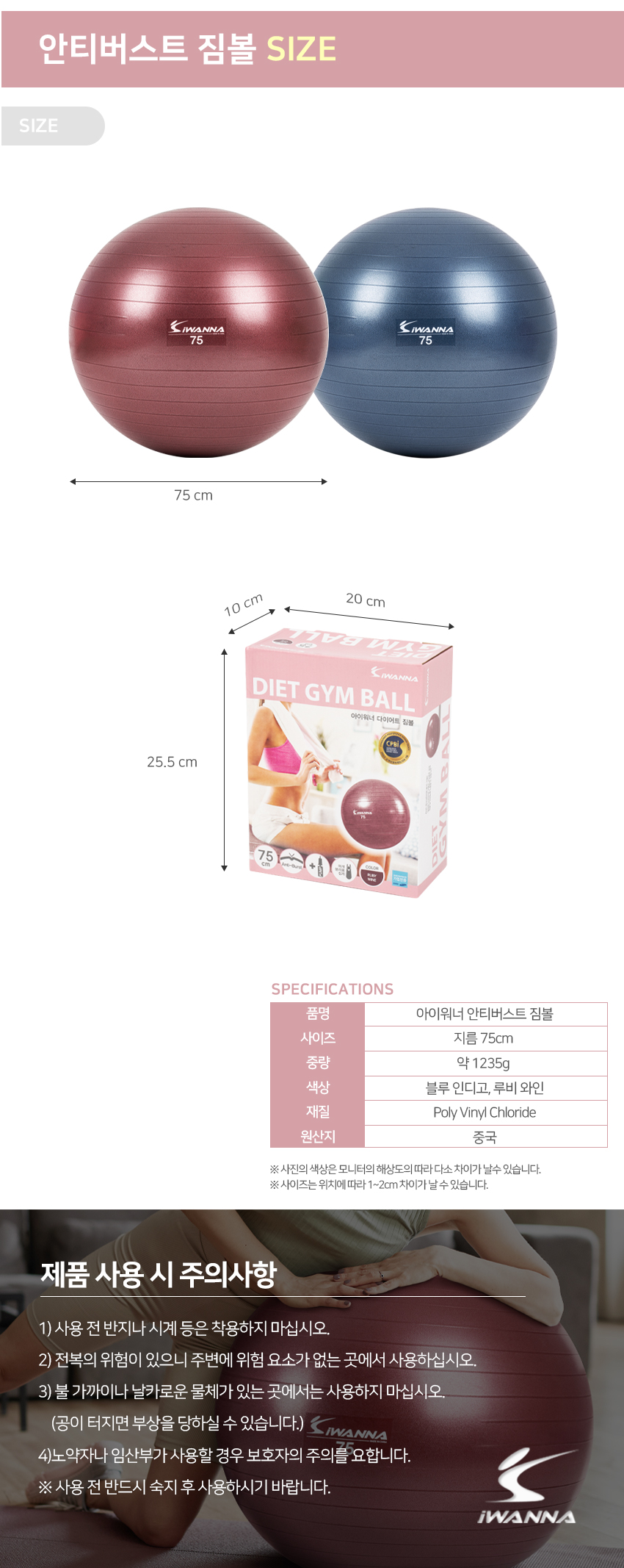• 모델명아이워너 안티버스트 짐볼