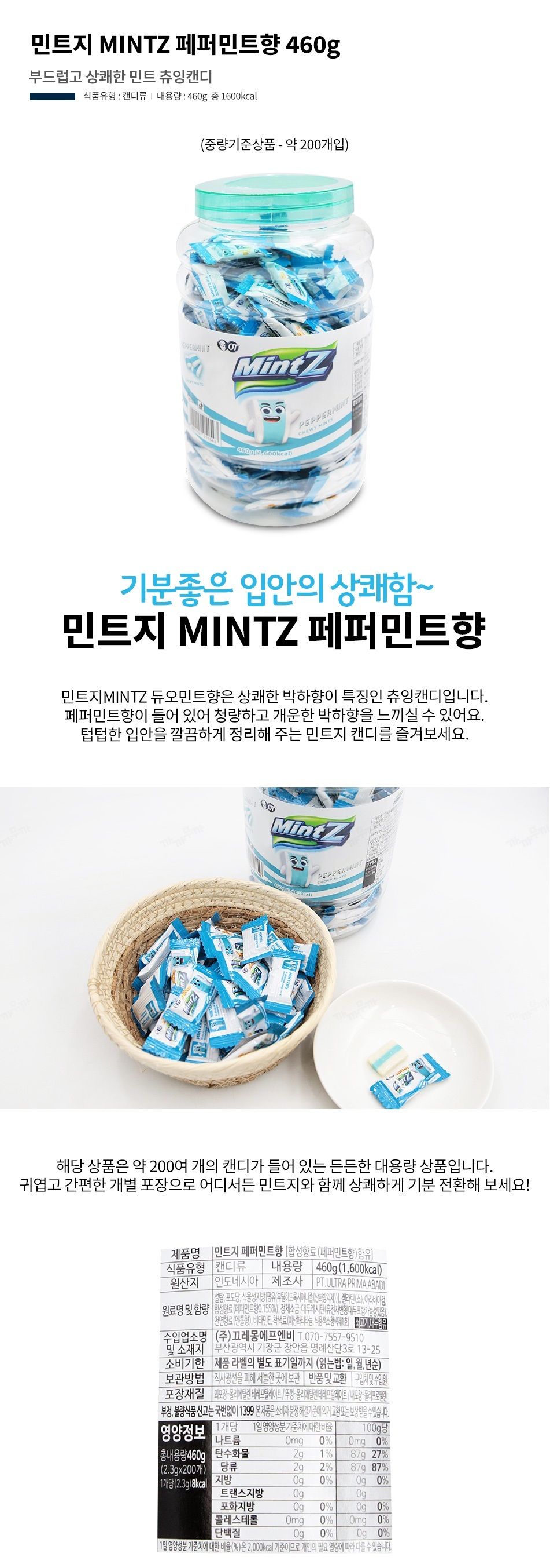 무배) 끄레몽 민트지 페퍼민트 460g X 6통 (1박스)