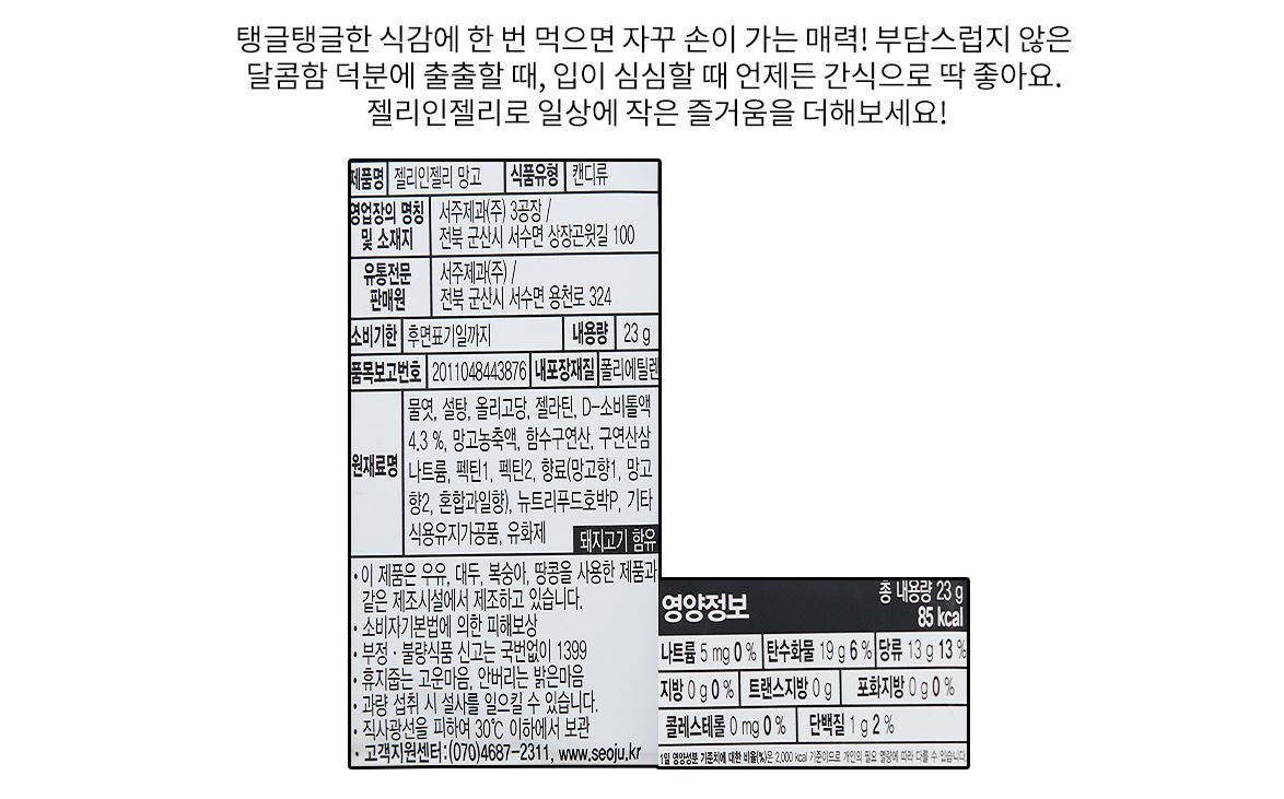 무배) 서주 젤리인젤리 망고 23g x 12개 (1박스-4통)