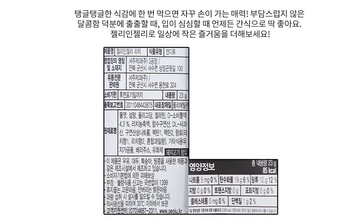 무배) 서주 젤리인젤리 리치 23g x 12개 (1통)