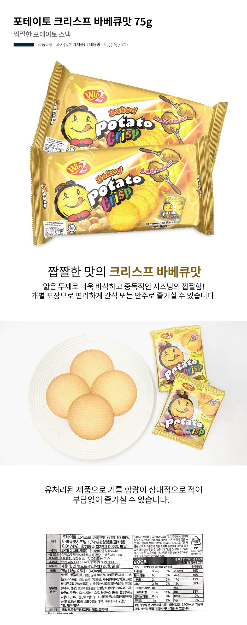 무배) 포테이토 크리스프 바베큐맛 75g X 36개 (1박스)