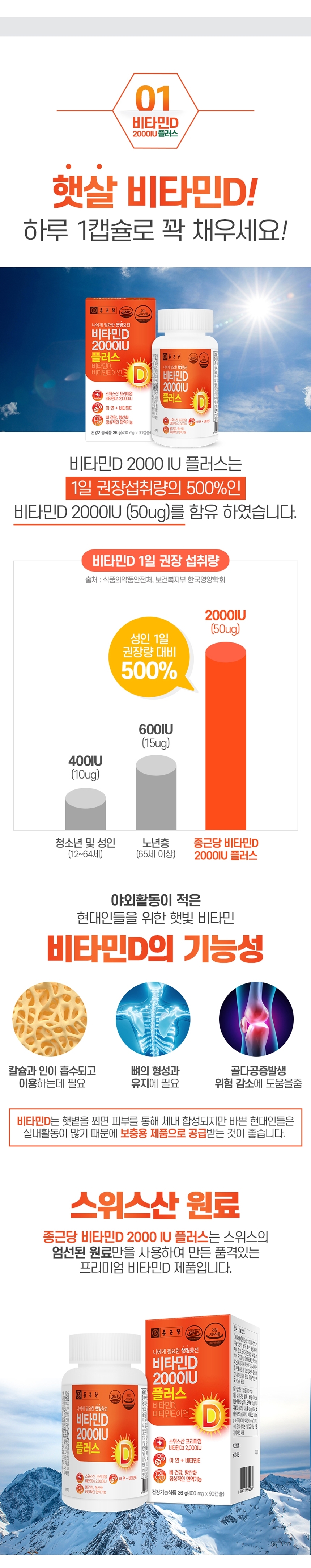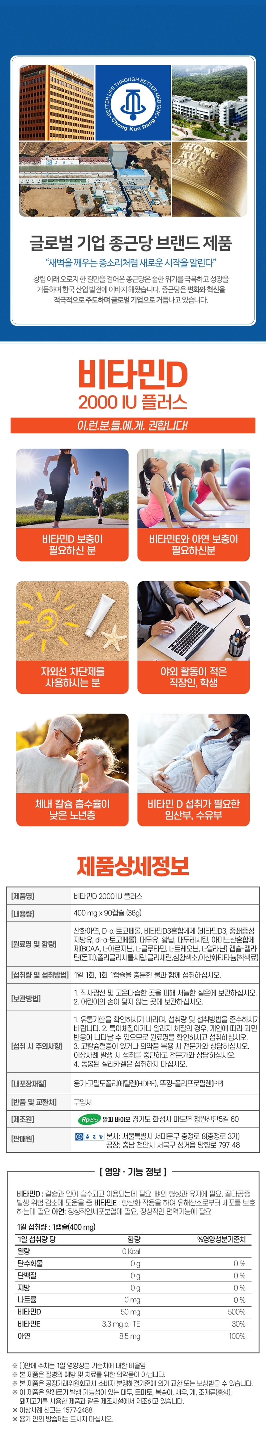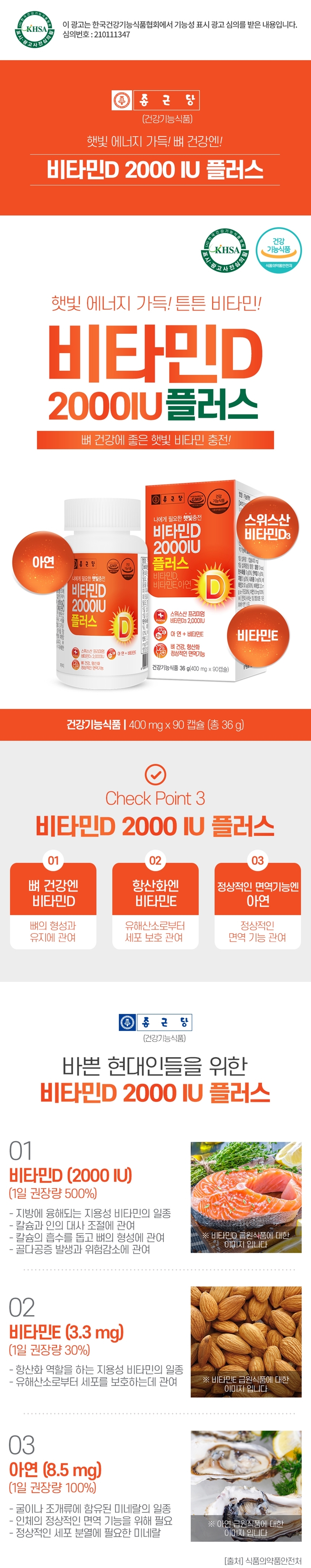 무배) (종근당) 비타민D 2000IU 플러스 400mg X 90캡슐