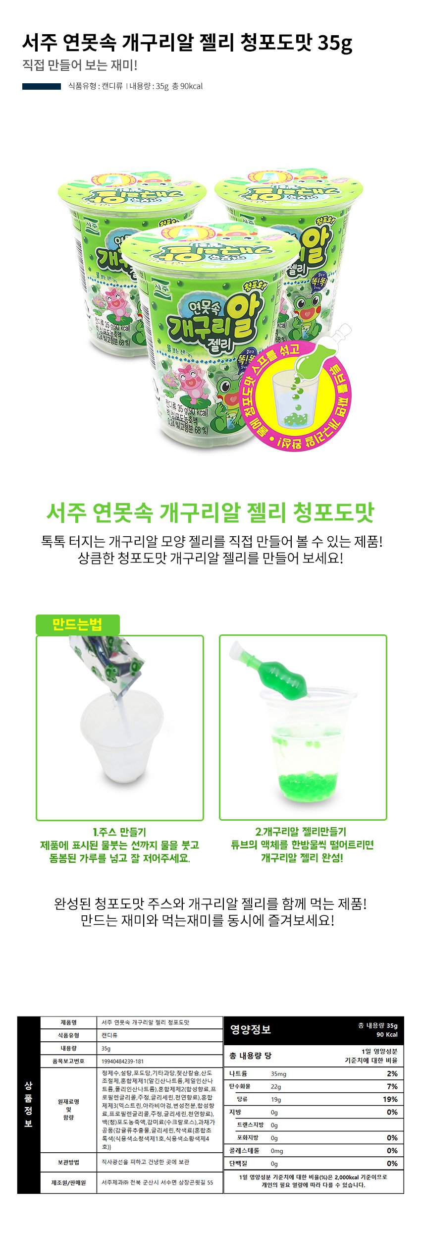 무배) 서주 연못속 개구리알 젤리 청포도맛 35gx8개 (1통)