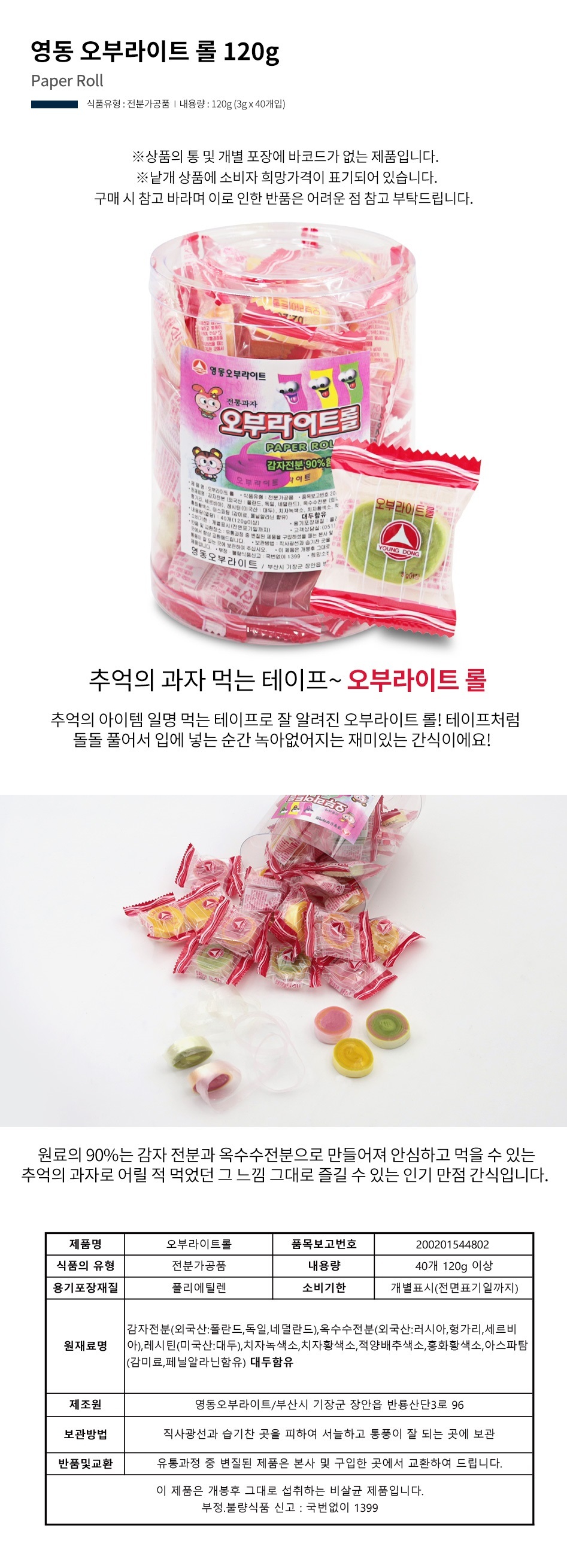 무배) 영동 오부라이트롤 120g (40개입) 먹는테이프