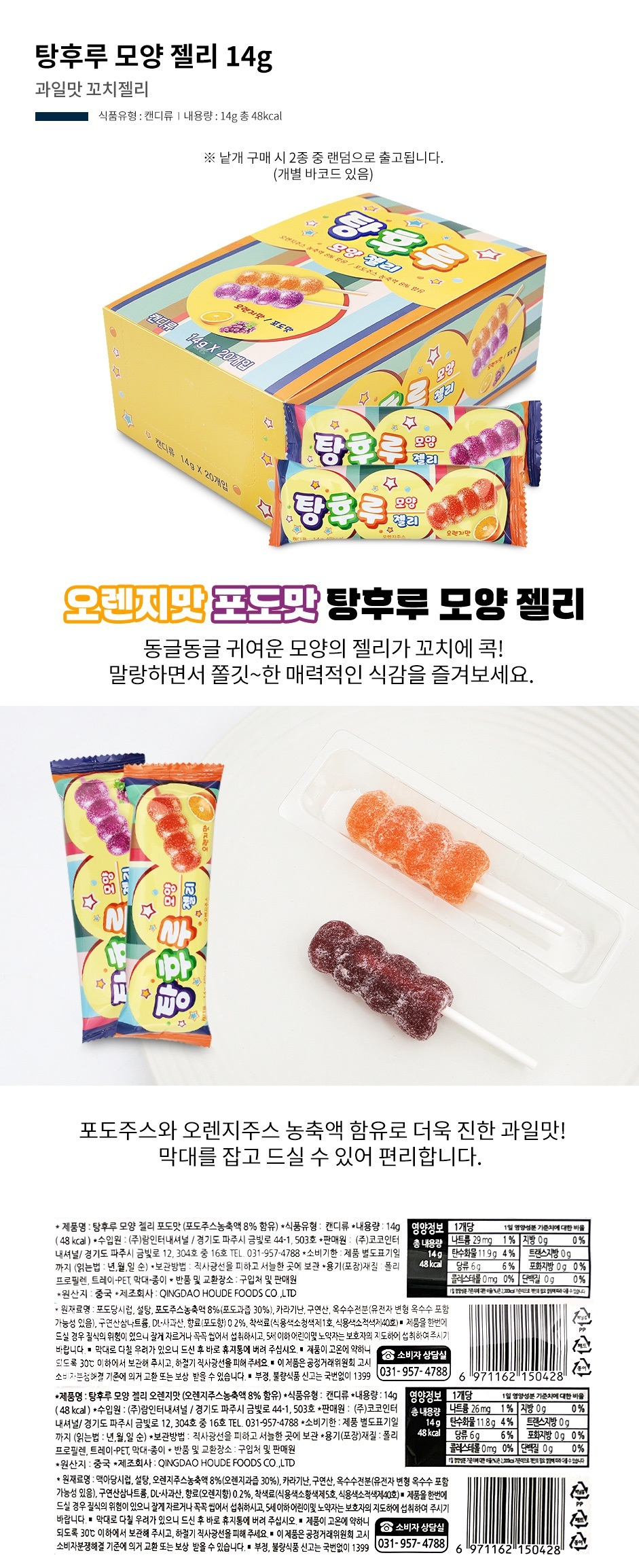 무배) 탕후루 모양 젤리 14g x 20개 (1통) 과일맛 꼬치젤리