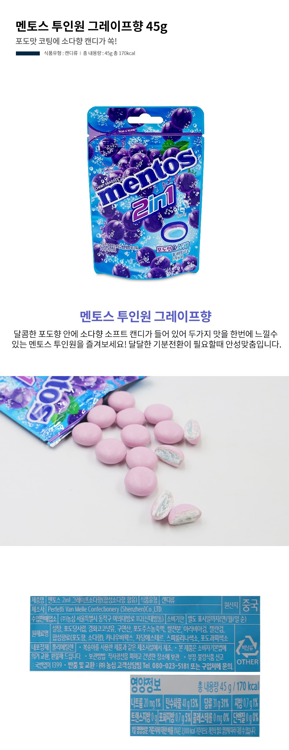 무배) 멘토스 투인원 그레이프 소다향 45g x 10개(1통)