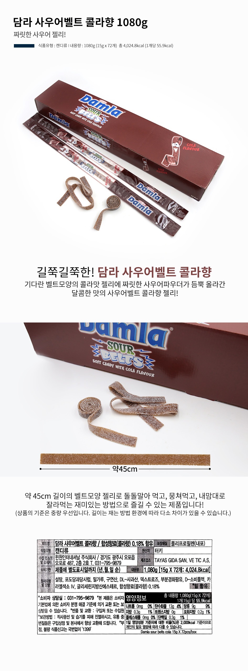무배) 담라 사우어벨트 콜라향 1080g (15g x 72개) (1통)