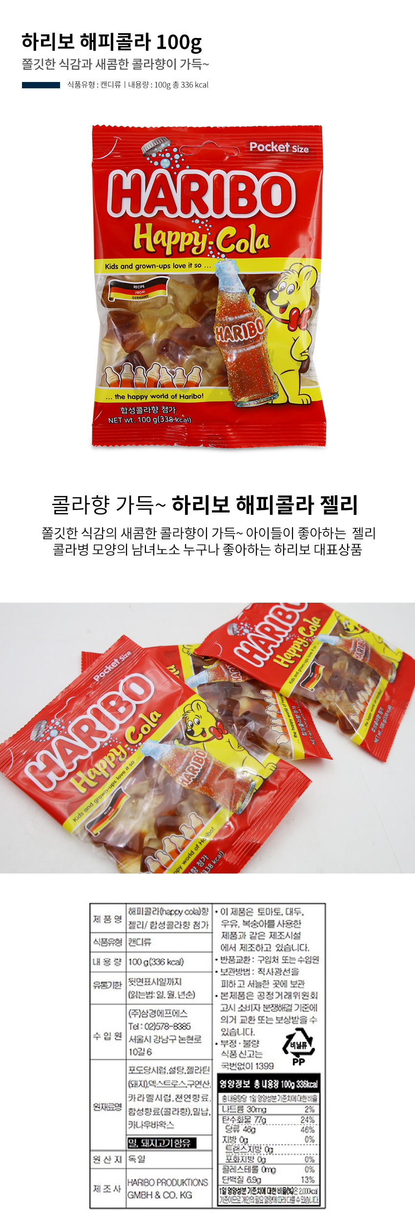 무배) 하리보 해피콜라 100g X 6개