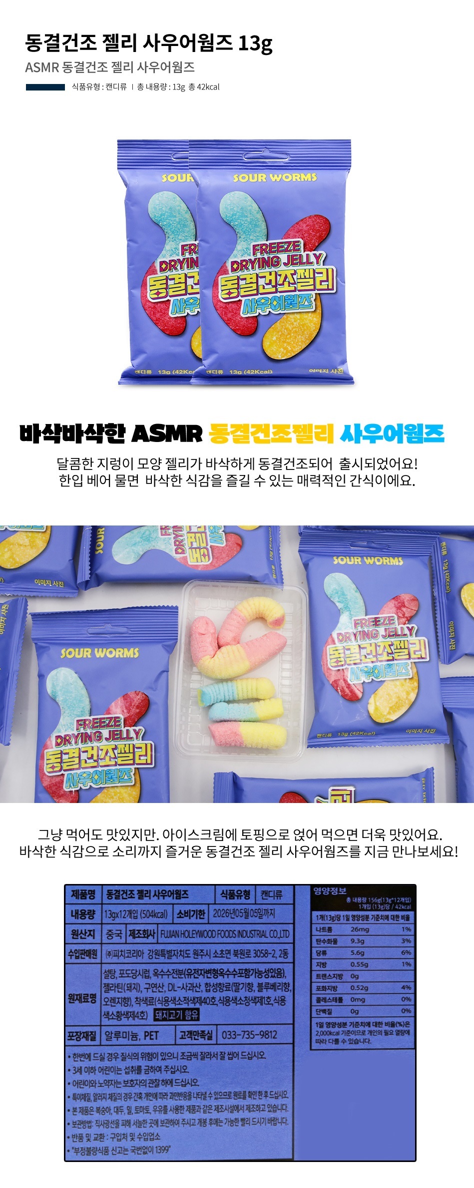 무배) 동결건조젤리 사우어 웜즈 13g x 6개
