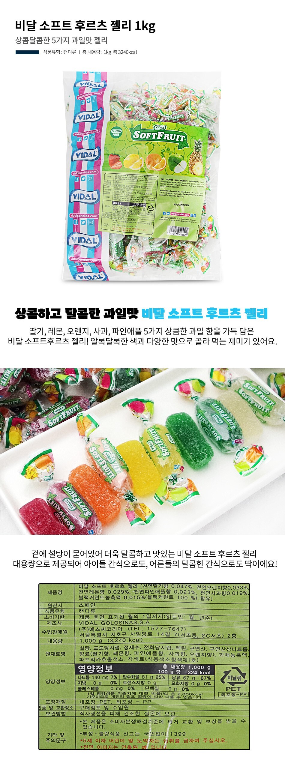 무배) 비달 소프트 후르츠 젤리 1kg x 2개 대용량 과일젤리 수입젤리