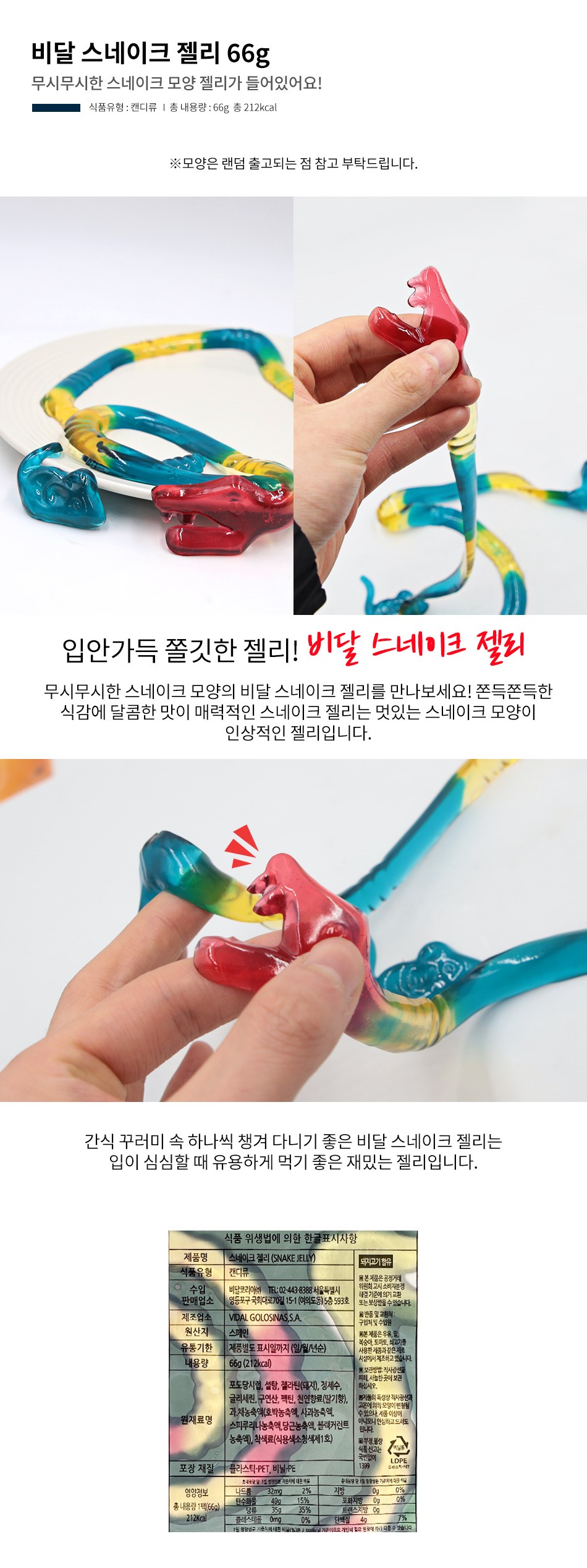 무배) 비달 스네이크 젤리 66g X 3개