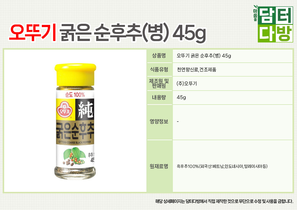 오뚜기 굵은 순후추(병) 45g x 5개