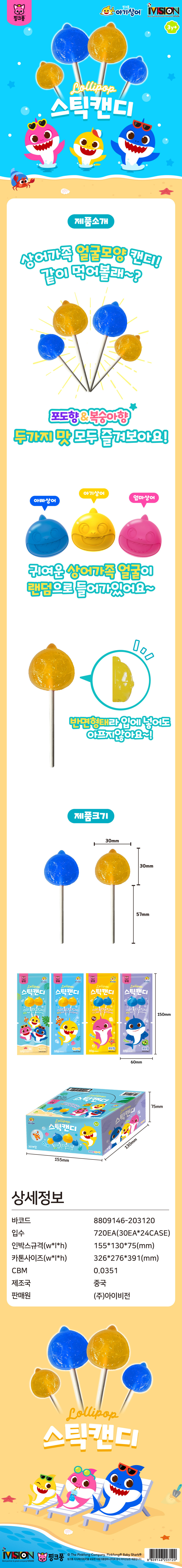 핑크퐁 아기상어 스틱캔디-30EA