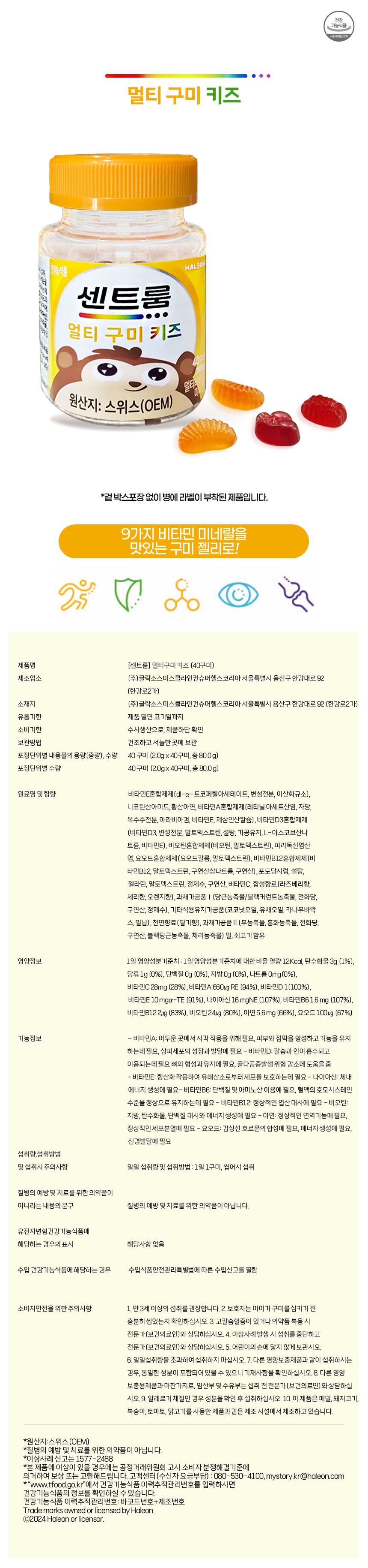 | 포장단위별 용량/수량 | 포장단위별 용량(중량):40 구미 (2.0g x 40구미, 총 80.0 g) / 포장단위별 수량:1개 |