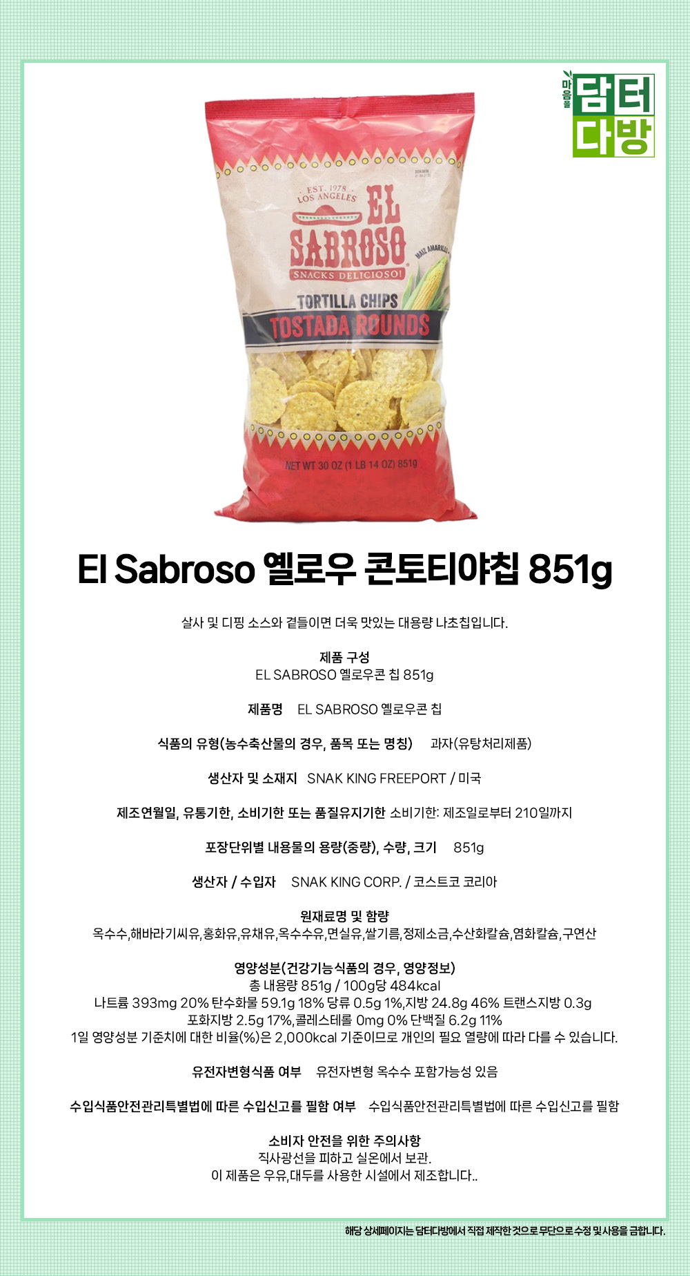 El Sabroso 옐로우 콘토티야칩 851g