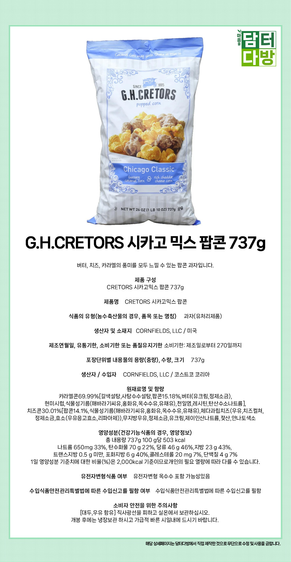 G.H.CRETORS 시카고 믹스 팝콘 737g