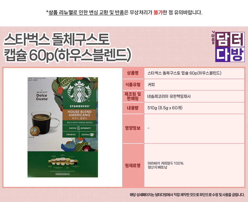 스타벅스 돌.체구스토 캡슐 60p(하우스블렌드)