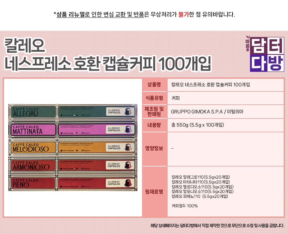 칼레오 네스프레소 호환 캡슐커피 100개입T