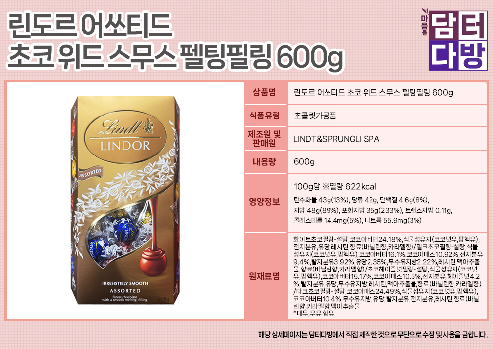 린도르 어쏘티드 초코 위드 스무스 펠팅필링 600gT