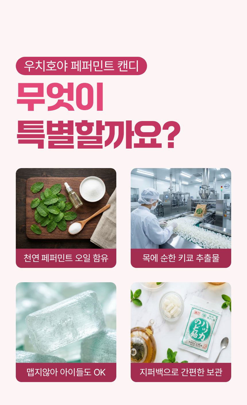 원재료명/함량 설탕 (일본 제조), 물 사탕, 도라지 추출물, 옥수수 전분 / 향료 (하카 오일)