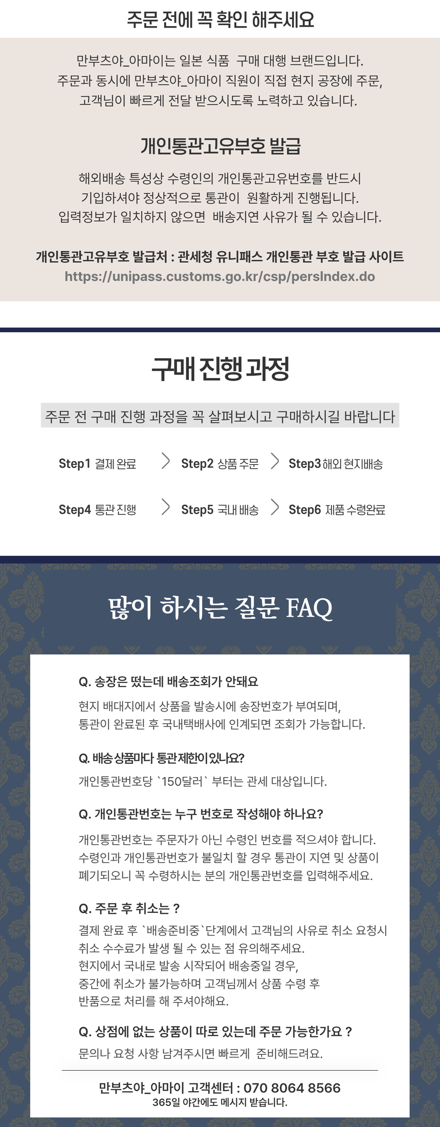 식품위생법에 따른 수입신고를 필함 문구 상세설명페이지 참고, 만부츠야 상품관리팀 070 8064 8566