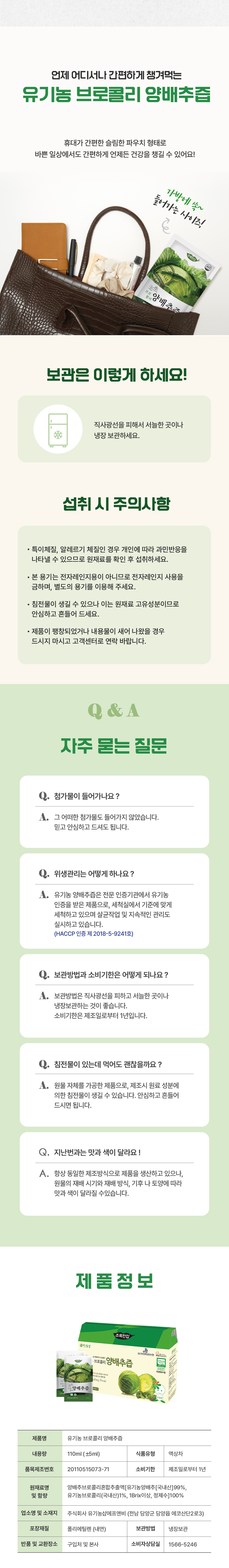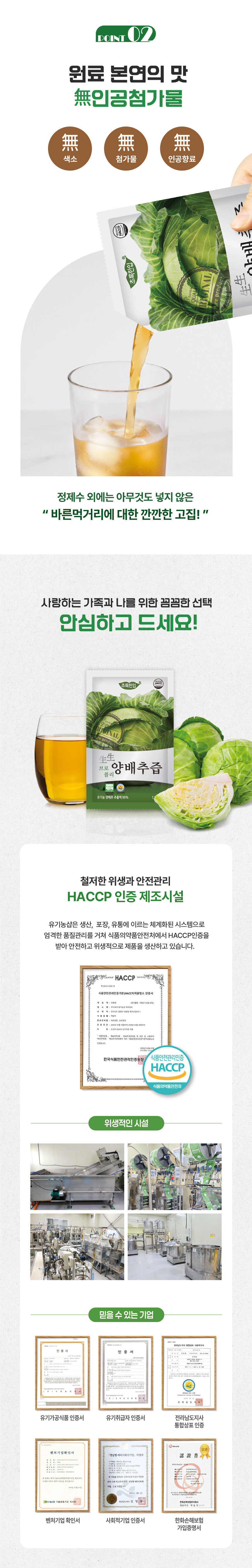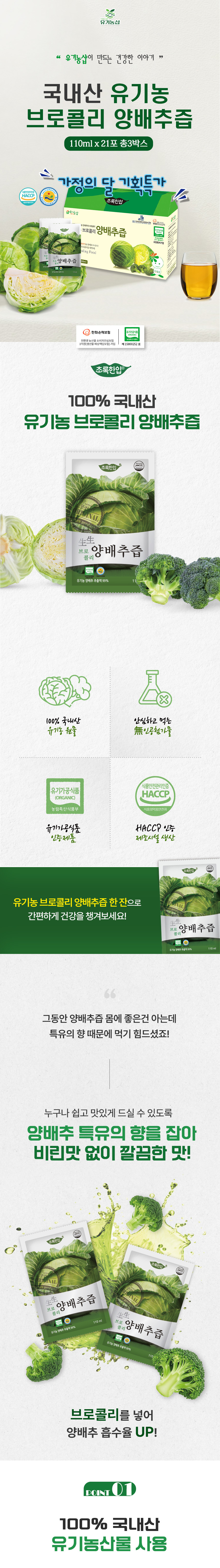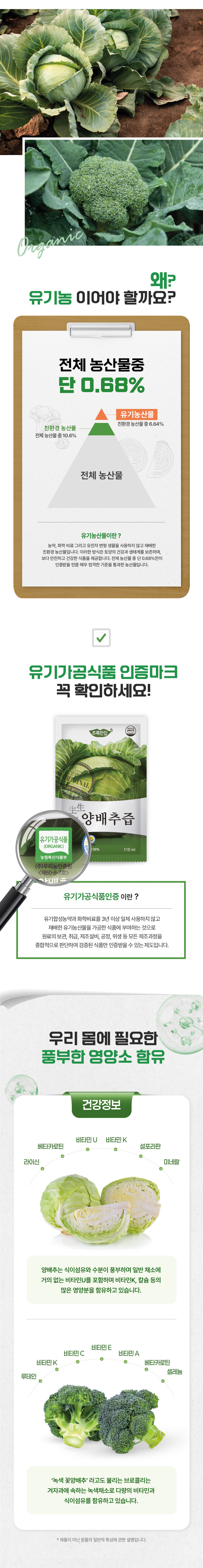 원재료명/함량 양배추브로콜리혼합추출액[유기농양배추(국내산)99%,유기농브로콜리(국내산)1%,1Brix이상,정제수]100%
