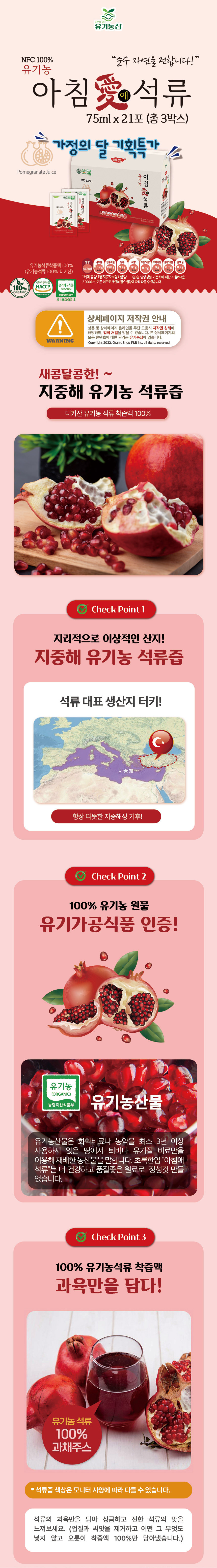 | 원재료명/함량 | 유기농착즙액[유기농석류100%(유기농석류100%,터키산) |