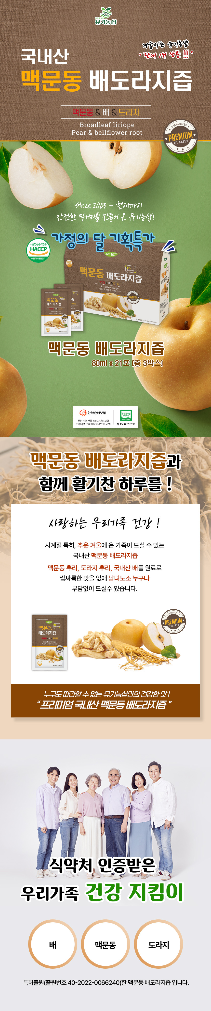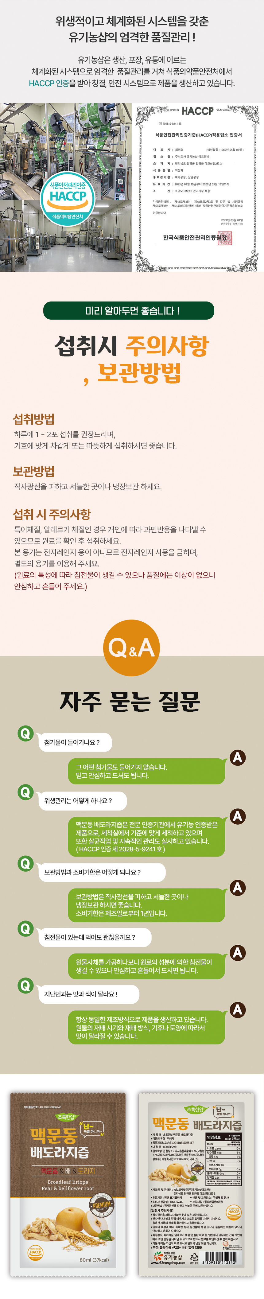 | 제조원 | 유기농샵 (전라남도 담양군 담양읍 에코산단2로 3) |