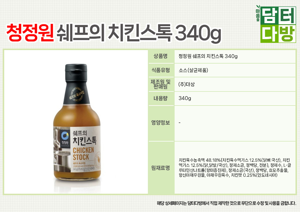 청정원 쉐프의 치킨스톡 340g X 3개