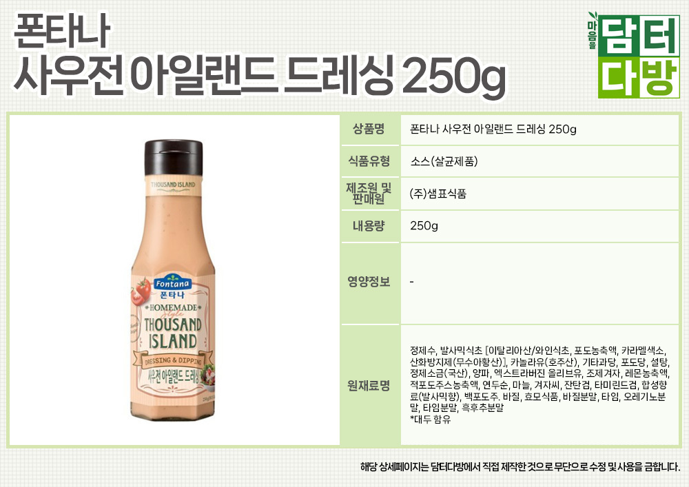 폰타나 사우전 아일랜드 드레싱 250g X 3개