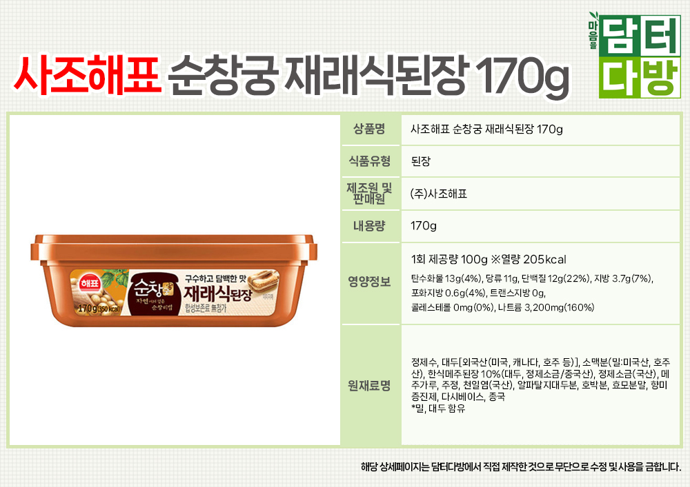 사조해표 순창궁 재래식된장 170g X 12개