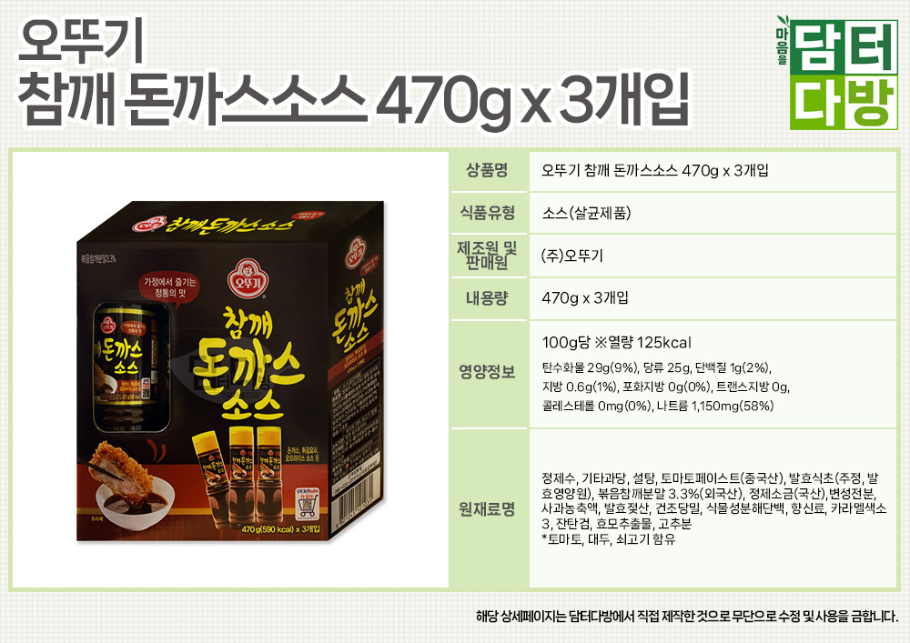 오뚜기 참깨 돈까스소스 470g x 3개입