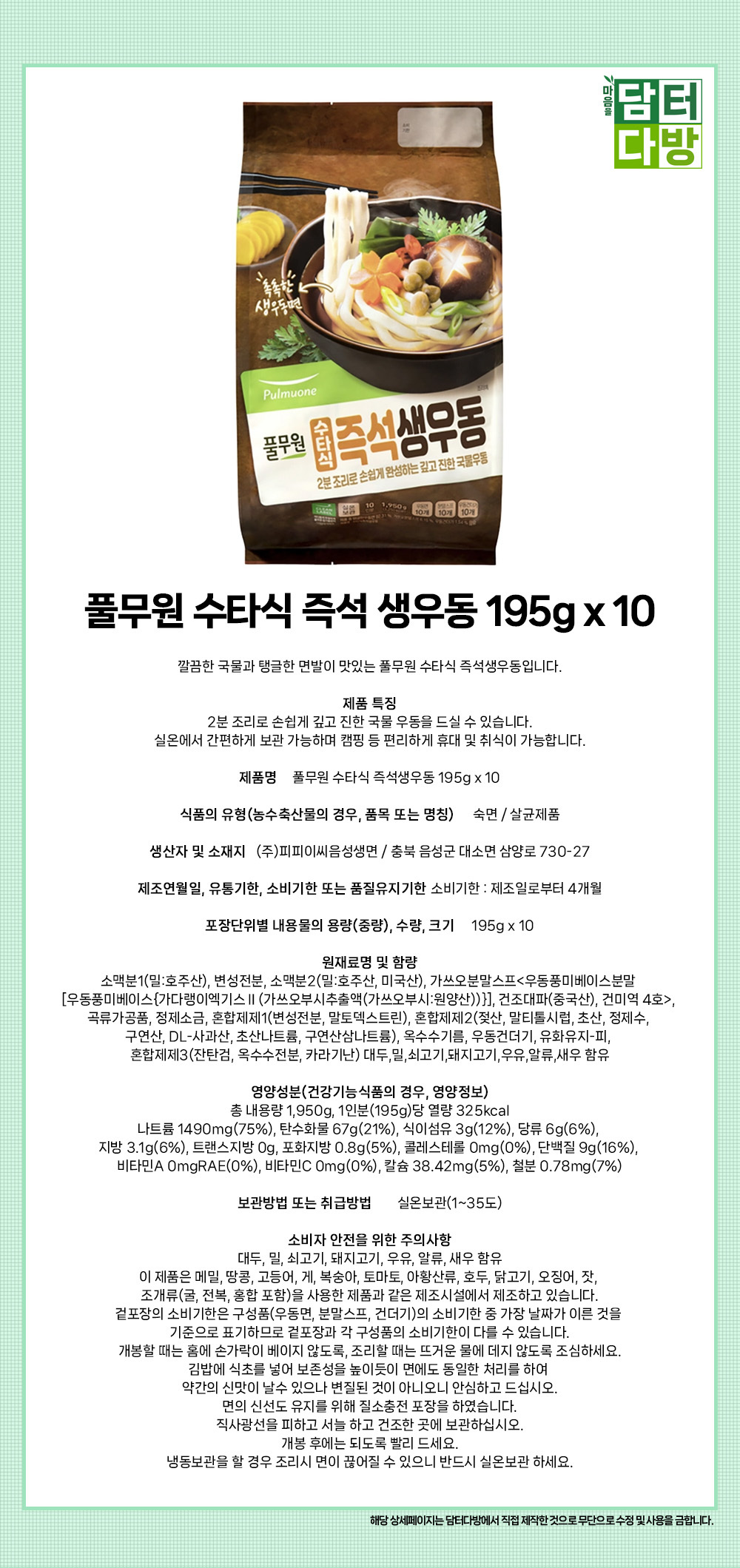 • 제조사(주)피피이씨 음성생면