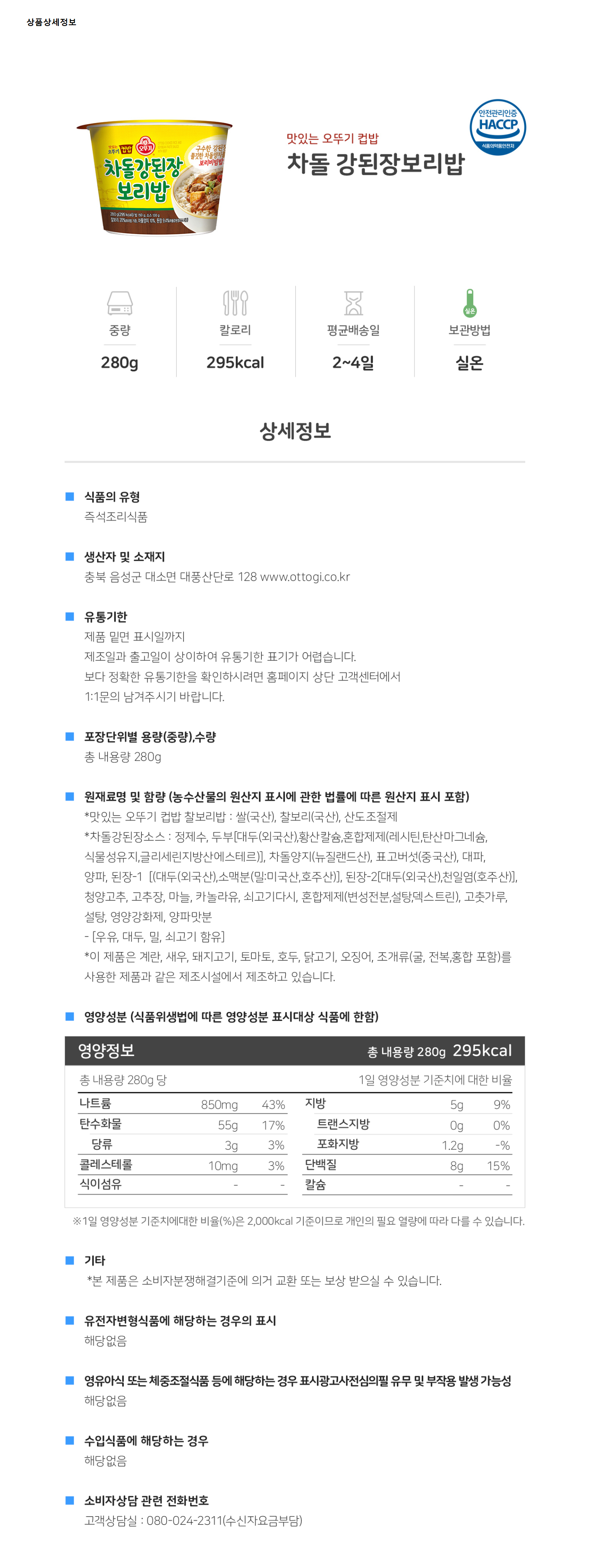 오뚜기 컵밥 차돌강된장보리밥 310g 12EA
